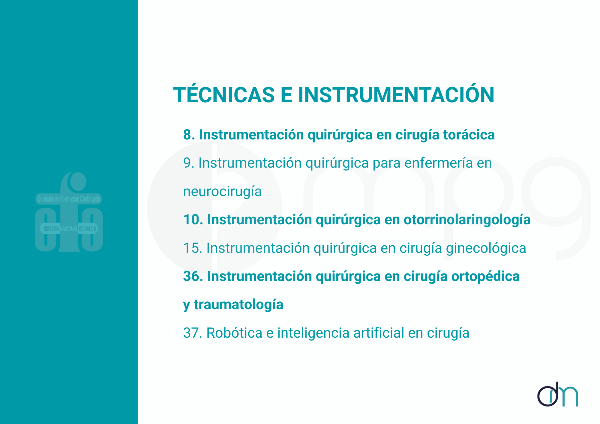 ✔ Avanzar hacia la instrumentación en especialidades como cirugía general, ginecológica, ortopédica, cardíaca, neurocirugía u oftalmología.